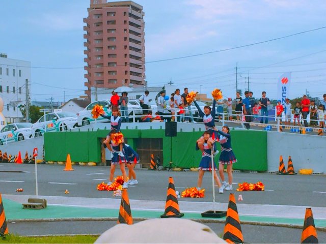 ボルボ香里園近くの摂南大学のチアガールの方達のチアだったり、香里教習所の二輪車の先生たちの